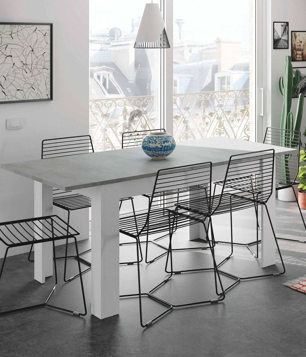 Dmora - Tavolo allungabile Midland, Consolle estensibile per sala da pranzo, Tavolo apribile da cucina con prolunga, 140/190x90h78 cm, Cemento e Bianco