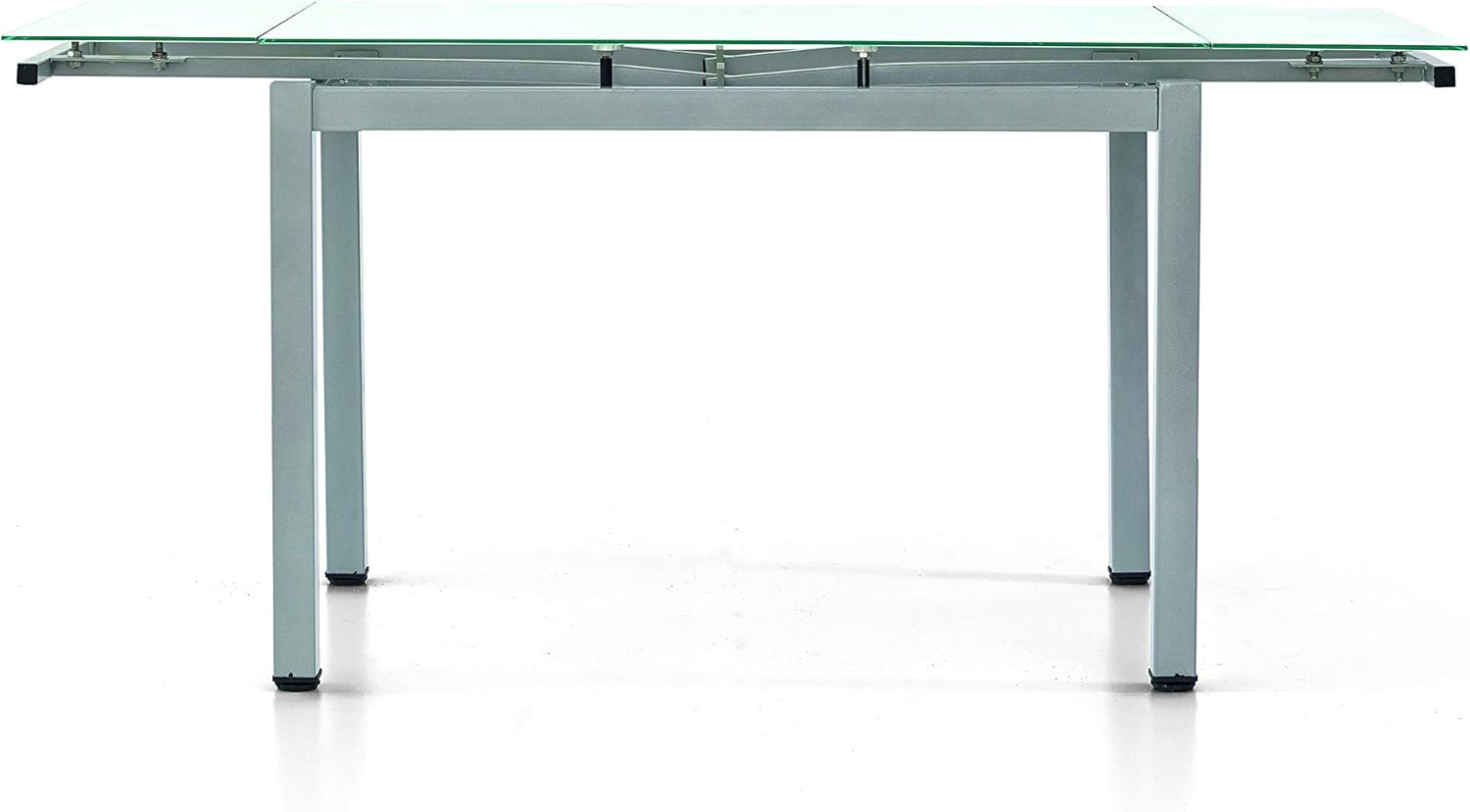 KONTE.DESIGN Tavolo RAPALLO allungabile in vetro bianco opaco e base metallo satinato grigio, 110x70x76 cm