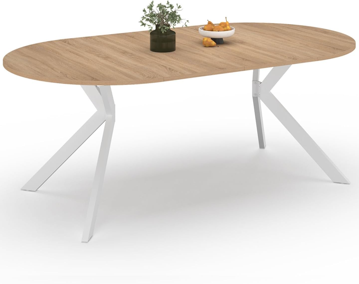 PAZZO DESIGN Tavolo Allungabile Tommaso, Rovere Rustico, Gambe Bianche, Tavolo Cucina, Tavolo Soggiorno, Made in Italy, 110x70x76,5 cm - id 1957