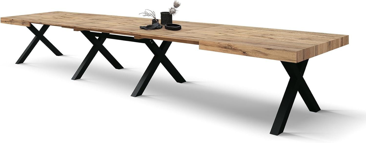 PAZZO DESIGN Tavolo Allungabile Roberta, Tavolo Soggiorno, Tavolo Cucina, Rovere Rustico, Gambe Incrociate Nere a X, Da 180 a 480 cm, Made in Italy - id 2005