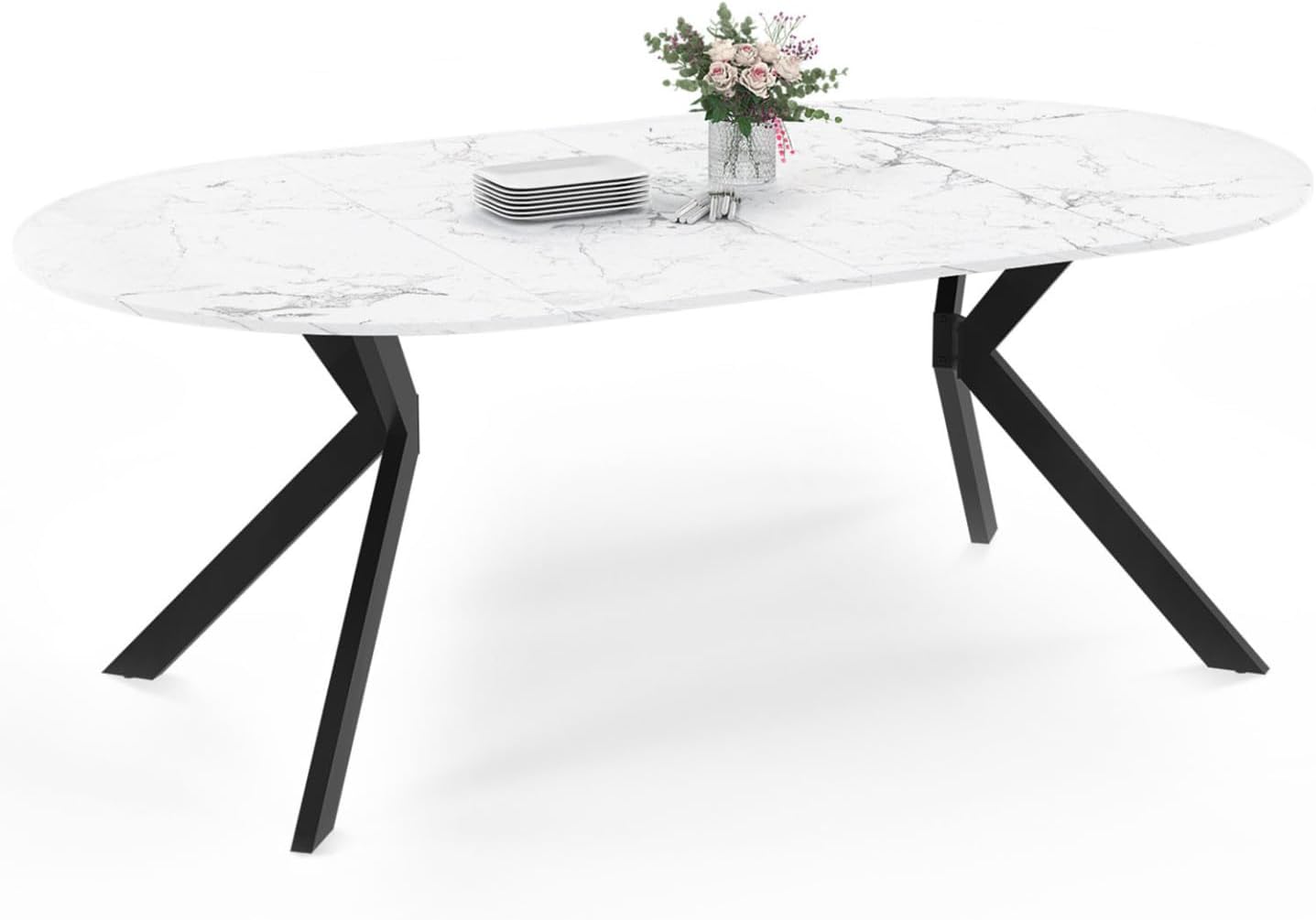 IDMarket - ALIX tavolo da pranzo rotondo allungabile 4-10 persone gamba a ragno nera piano effetto marmo bianco ALASKA 110-200 cm