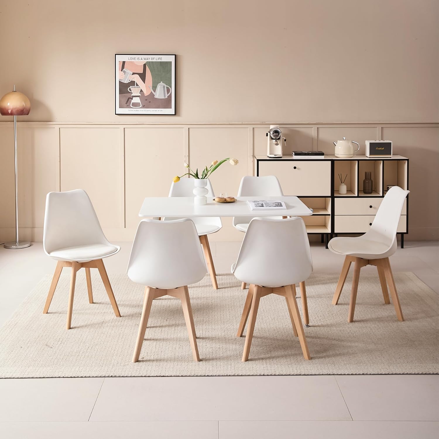 GrandCA HOME Tavolo da Pranzo e 6 Sedie da Pranzo Set da Sala da Pranzo Moderno, Tavolo da Cucina Rettangolare Struttura di Giunzione Sedie da Scrivania e da Cucina 6 sedie bianco+1 tavolo